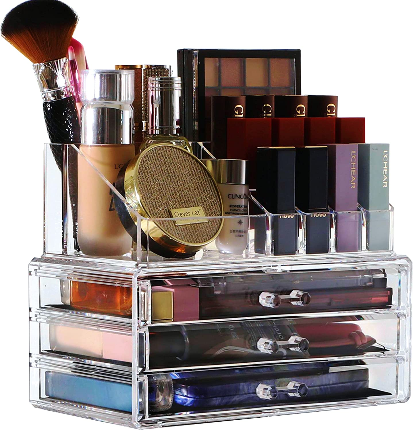 Cq acrylic Makeup Organizer Bathroom Organizers and Storage With 8 Drawers for Vanity Skincare Countertop Desk,Clear Cosmetic Display Case for