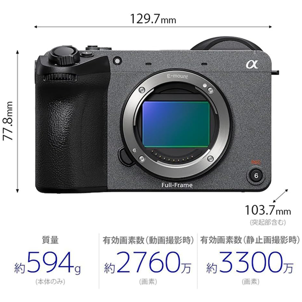 | 付属品 | アイピースカップ, アクセサリーシューキャップ, ボディキャップ, リチャージャブルバッテリーパック NP-FZ100 |