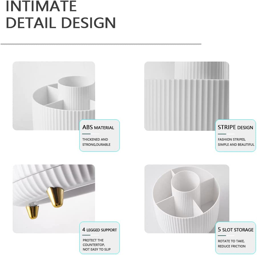 Makeup Organizer, 360 Rotating Makeup Brush Holder, 5 Slot Large Capacity Makeup