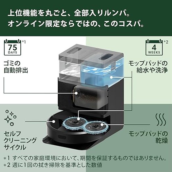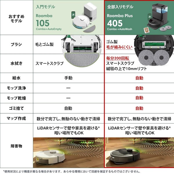 ルンバ(Roomba)Plus 405 Combo ロボット + AutoWash 充電ステーション (ロボット掃除機) iRobot【水拭き/両用/多機能充電ステーション搭載/自動ゴミ収集/モップの自動洗浄・乾燥機能付き/パワーリフト吸引/スマートスクラブ対応/マッピング/アプリ操作/JOOM購入時12ヶ月保証/G185060】ブラック