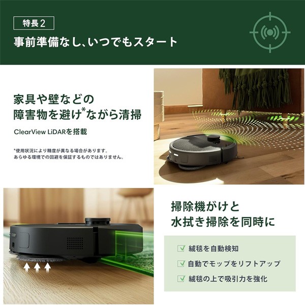 その他 機能‎LiDARナビゲーション, エッジクリーニング, スマートマッピング, 掃除機&モップ掛け同時実行, 自動モップ洗浄