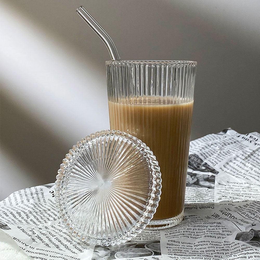 Transparent With Lid And Straw Mug Tea Cup Stripe Glass Cup Milk Coffee Mug