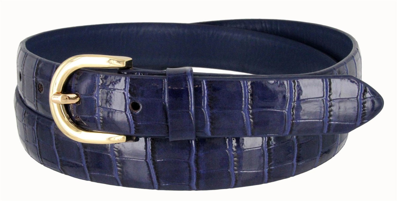 Women's Skinny Thin Alligator Embossed Genuine Leather Belt 1" (25mm) Wide